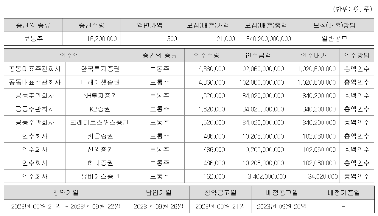 ● 공모청약일 2023.09.21 ~ 2023.09.22