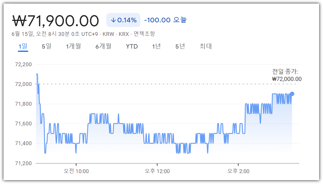 삼성전자 주가 개요 (2023년 6월 14일 기준)