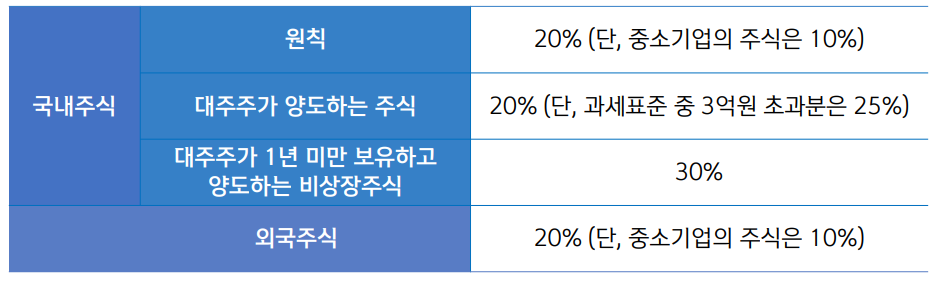● 대주주 1년 미만 보유 양도 비상장주식 30%