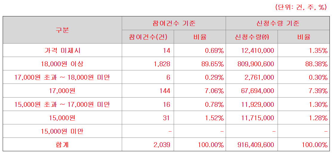 ● 신청주식수 (단위:주) 916,409,600