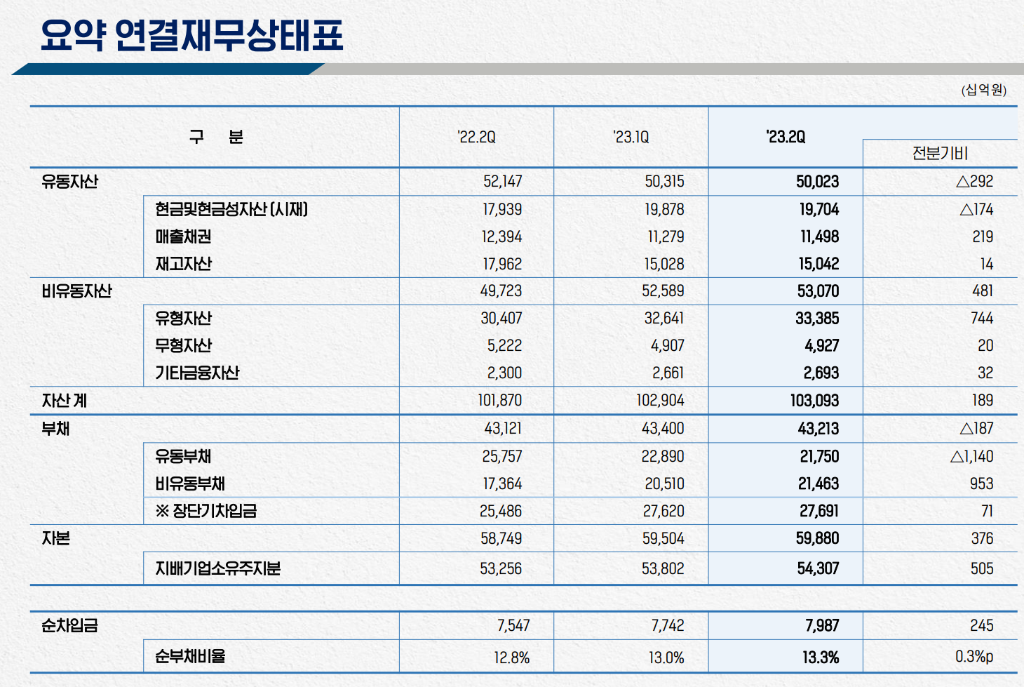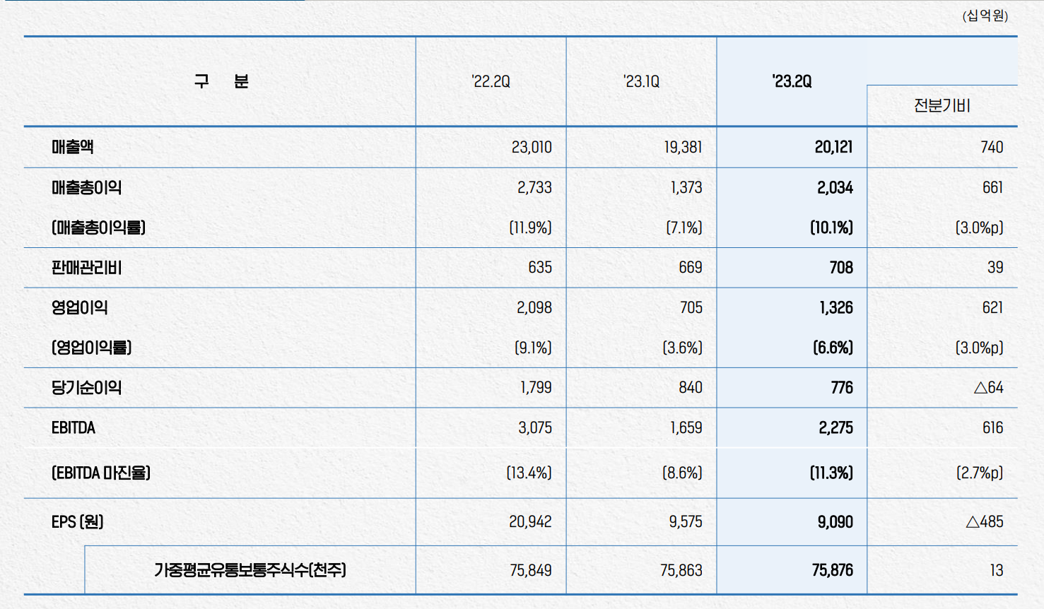 포스코 홀딩스 매출과 영업이익은 대부분 주력 사업 부문인 포스코에서 나왔다고 볼 수 있는데요, 포스코의 올해 2분기 매출은 10조2980억원, 영업이익은 8410억원으로 회복세를 나타내고 있으며 이는 전년 동기 대비 각각 13.3%, 36.4%씩 감소한 것입니다.
